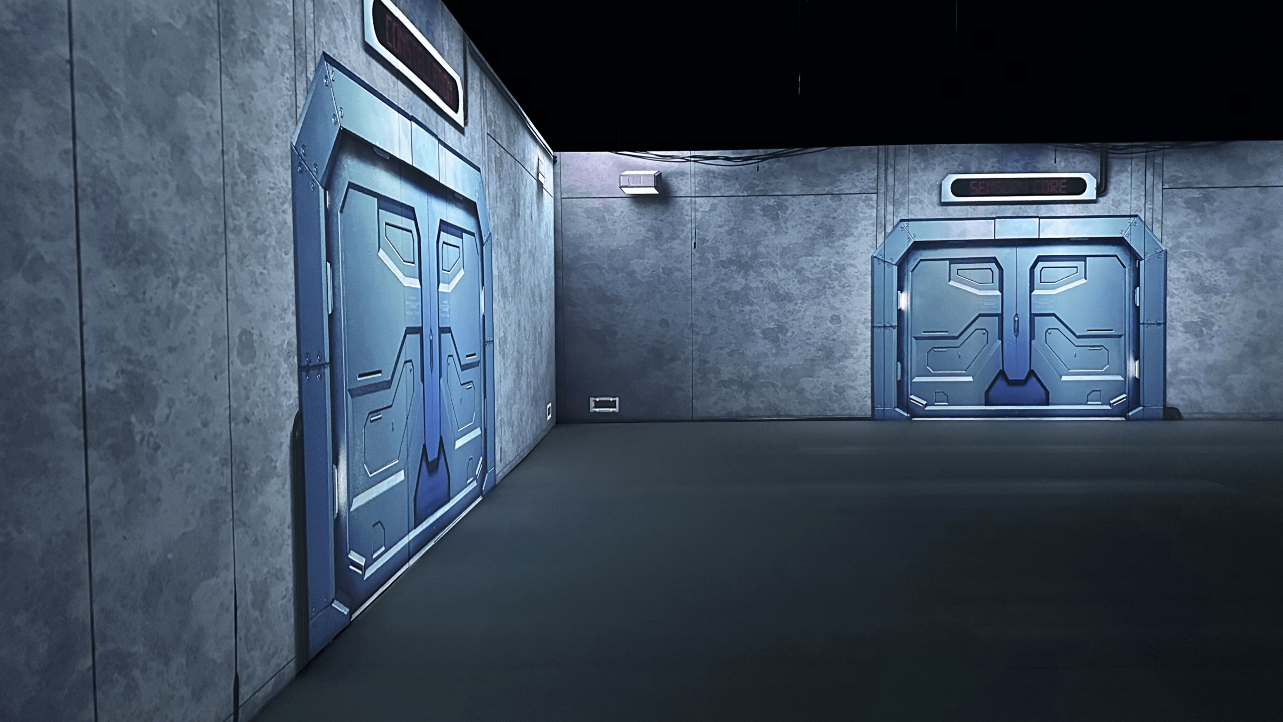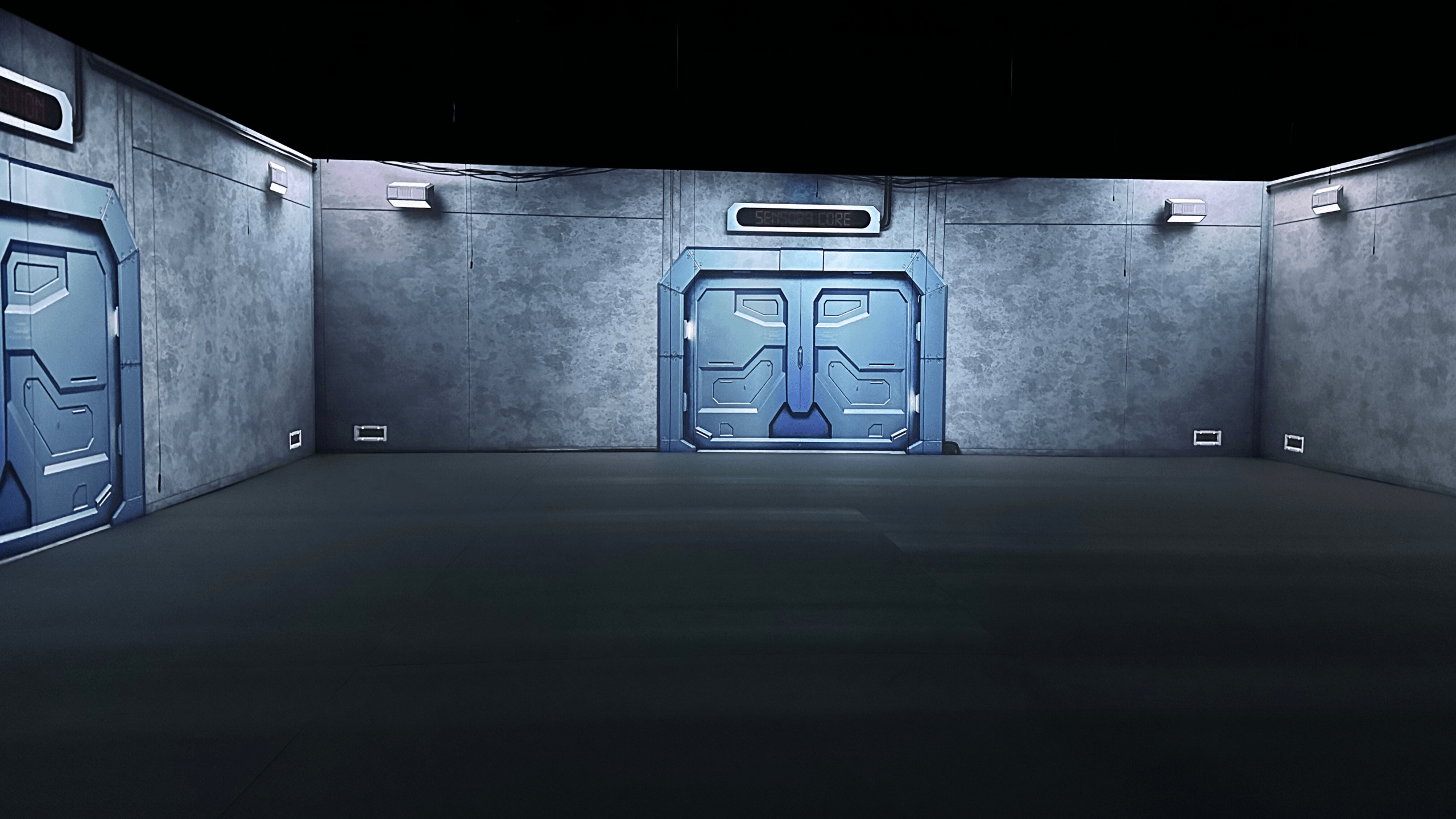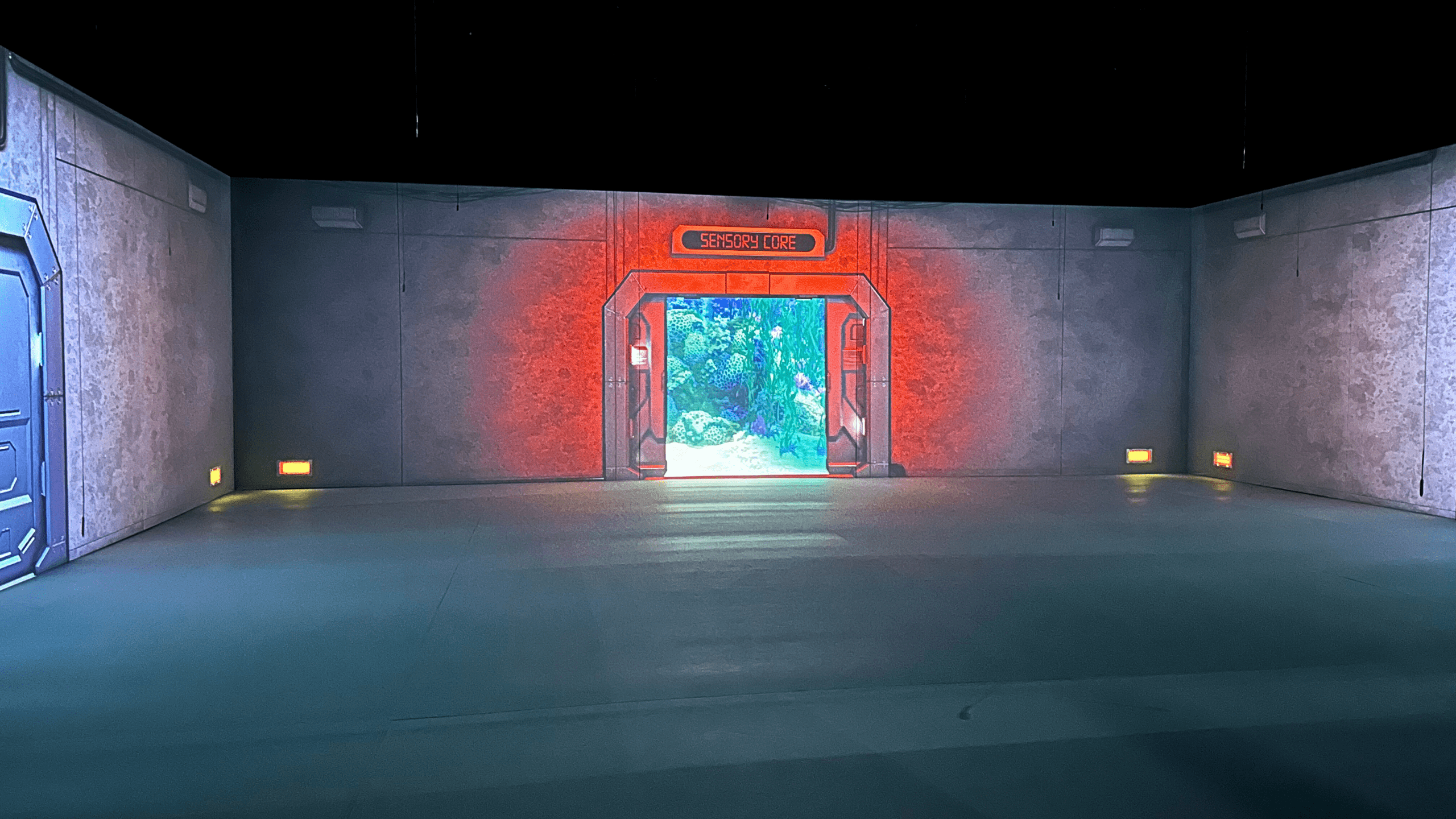 Además de las paredes, el suelo también funciona como superficie de proyección gracias a un material diseñado para absorber la luz y mejorar la visibilidad de las imágenes.